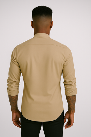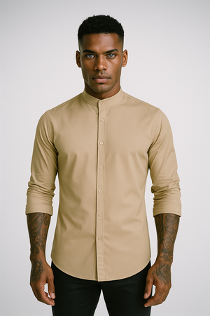Esta camisa cuello mao manga larga es perfecta para completar tu look. Está hecha con tela stretch que ofrece una alta resistencia al agua para protegerte de la humedad, hecho que la hace la prenda ideal para cualquier situación y de fácil planchado Disfruta del estilo moderno sin renunciar a la practicidad.
