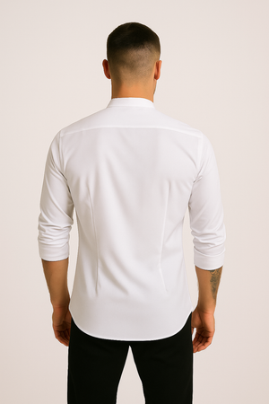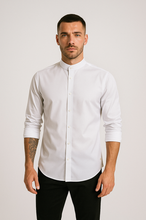 Esta camisa cuello mao manga larga es perfecta para completar tu look. Está hecha con tela stretch que ofrece una alta resistencia al agua para protegerte de la humedad, hecho que la hace la prenda ideal para cualquier situación y de fácil planchado Disfruta del estilo moderno sin renunciar a la practicidad.