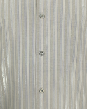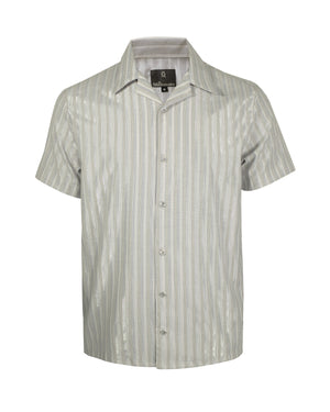 Con la Camisa Cuello Sport, una versátil prenda ligera para hombres, lucirás tu mejor look. Hecha de tejido suave y resistente de poliéster, la camisa cuenta con un cuello deportivo, líneas verticales con destellos plateados que le aportan un toque moderno y sofisticado para un aspecto atemporal.