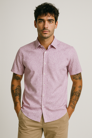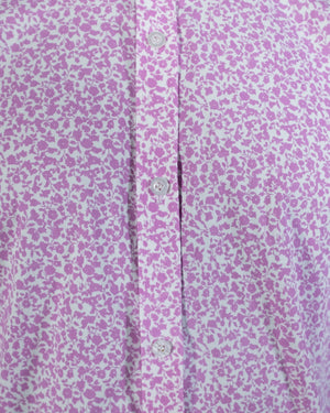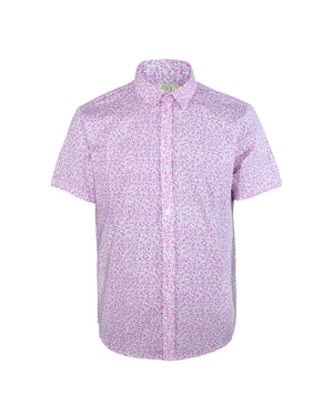 Esta camisa de manga corta es perfecta para resaltar tu estilo. Diseñada en color blanco y con estampado de flores en color violeta, puedes combinarla con unos jeans para un look moderno. La tela es suave y cómoda para usar todos los días.