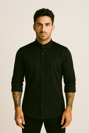 Esta camisa cuello mao manga larga es perfecta para completar tu look. Está hecha con tela stretch que ofrece una alta resistencia al agua para protegerte de la humedad, hecho que la hace la prenda ideal para cualquier situación y de fácil planchado Disfruta del estilo moderno sin renunciar a la practicidad.