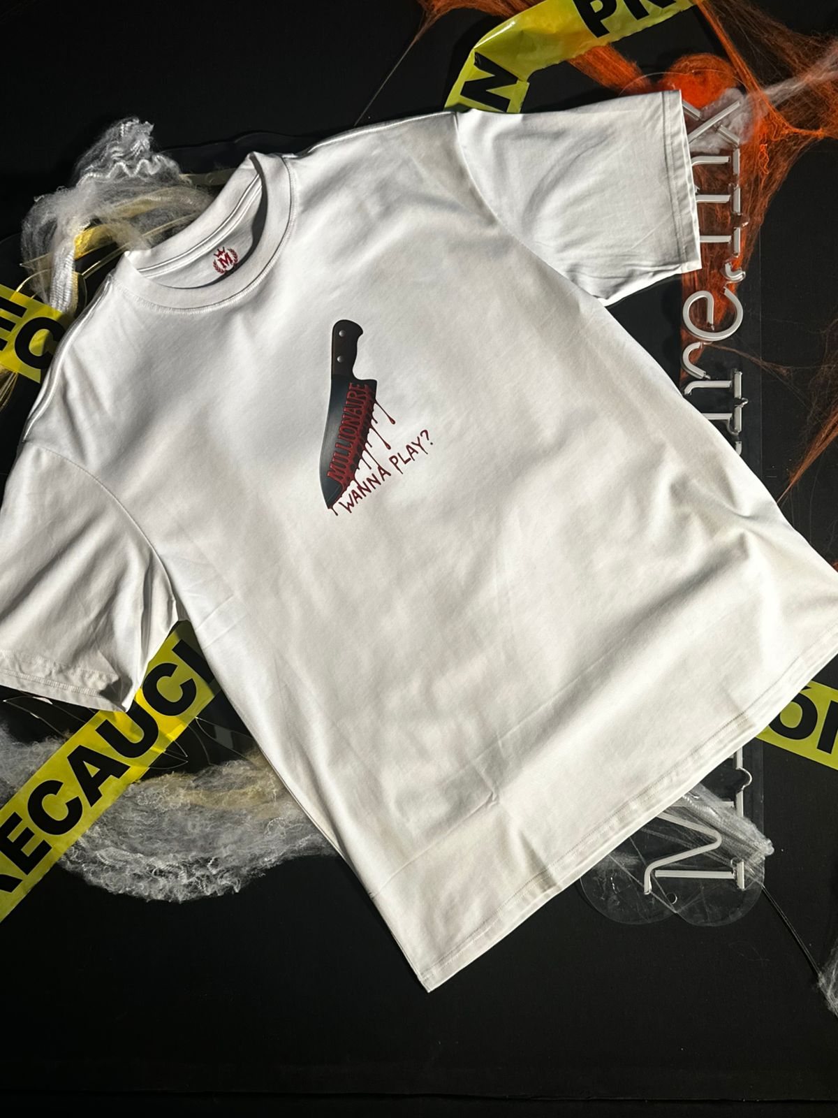 Playera 2577 Halloween Fluorescente Chuki malo Blanco