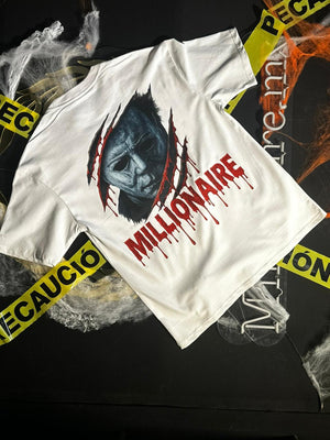 Playera 2577 Halloween Fluorescente Myers sangriento Blanco