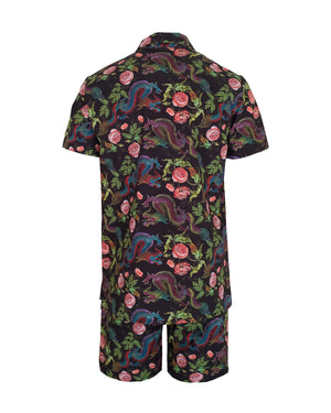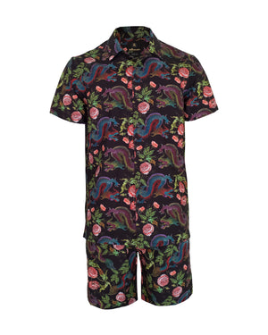 Este conjunto posee un diseño moderno que combina una camisa manga corta y un short con jareta ajustable, para que disfrutes del look perfecto y la comodidad que necesitas. Su tela repelente al agua proporciona una protección extra contra la humedad. ¡El estampado le dará a tu look un toque único!