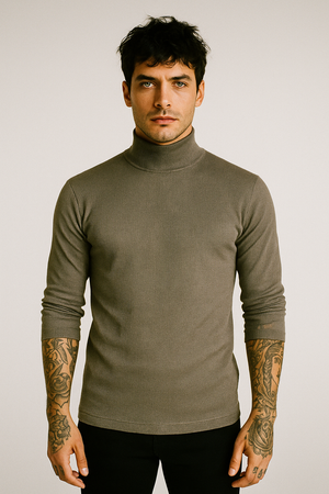 Una playera ideal para toda ocasión con cuello de tortuga y manga larga con tela de líneas. Esta playera en color negro es versátil y perfecta para combinar con looks formal o casual. Un clásico atemporal que perdurará en el tiempo.