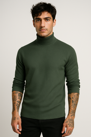 Una playera ideal para toda ocasión con cuello de tortuga y manga larga con tela de líneas. Esta playera en color negro es versátil y perfecta para combinar con looks formal o casual. Un clásico atemporal que perdurará en el tiempo.