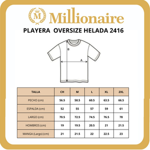 Experimenta la mejor sensación de comodidad con nuestra playera oversize helada 2416. Su tela ligera te proporcionará una sensación de frescura y comodidad durante todo el día. ¡Disfruta de un estilo único y refrescante con la playera oversize helada Millionaire!