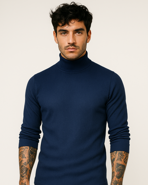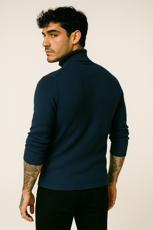 Una playera ideal para toda ocasión con cuello de tortuga y manga larga con tela de líneas. Esta playera en color negro es versátil y perfecta para combinar con looks formal o casual. Un clásico atemporal que perdurará en el tiempo.