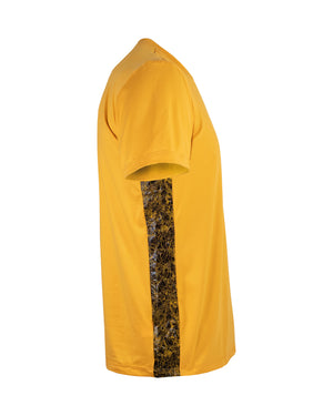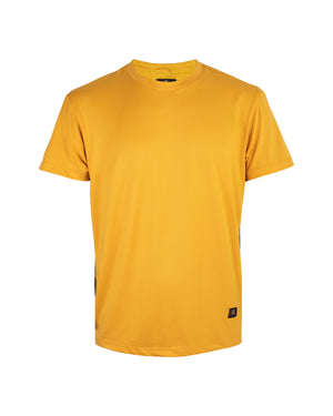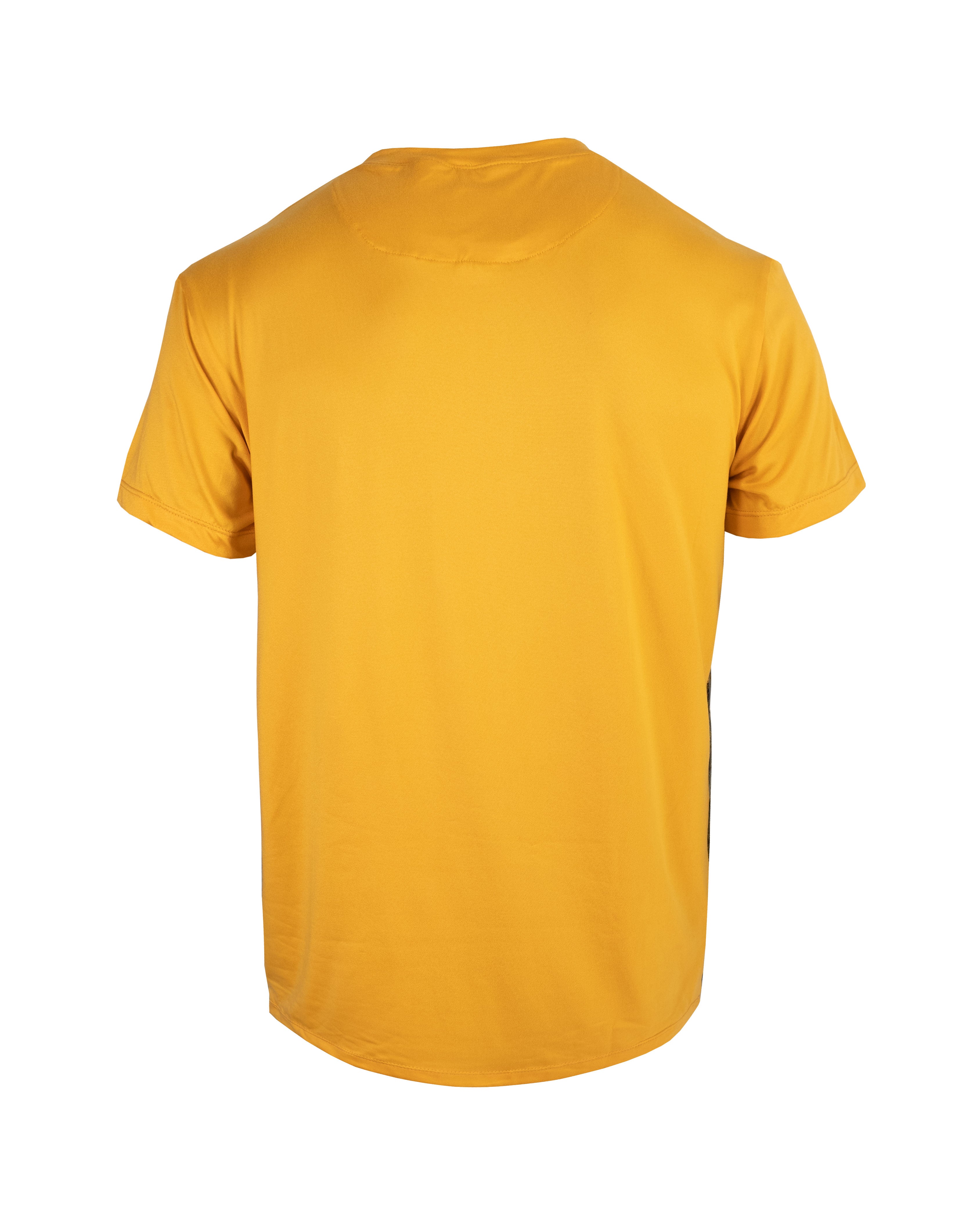 Playera manga corta y cuello redondo, con aplicación de tela de importación en costados.