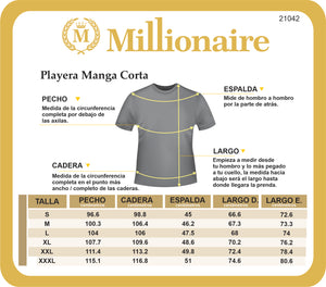 Playera manga ranglan con cuello redondo, escudo Millionaire bordado en pecho.