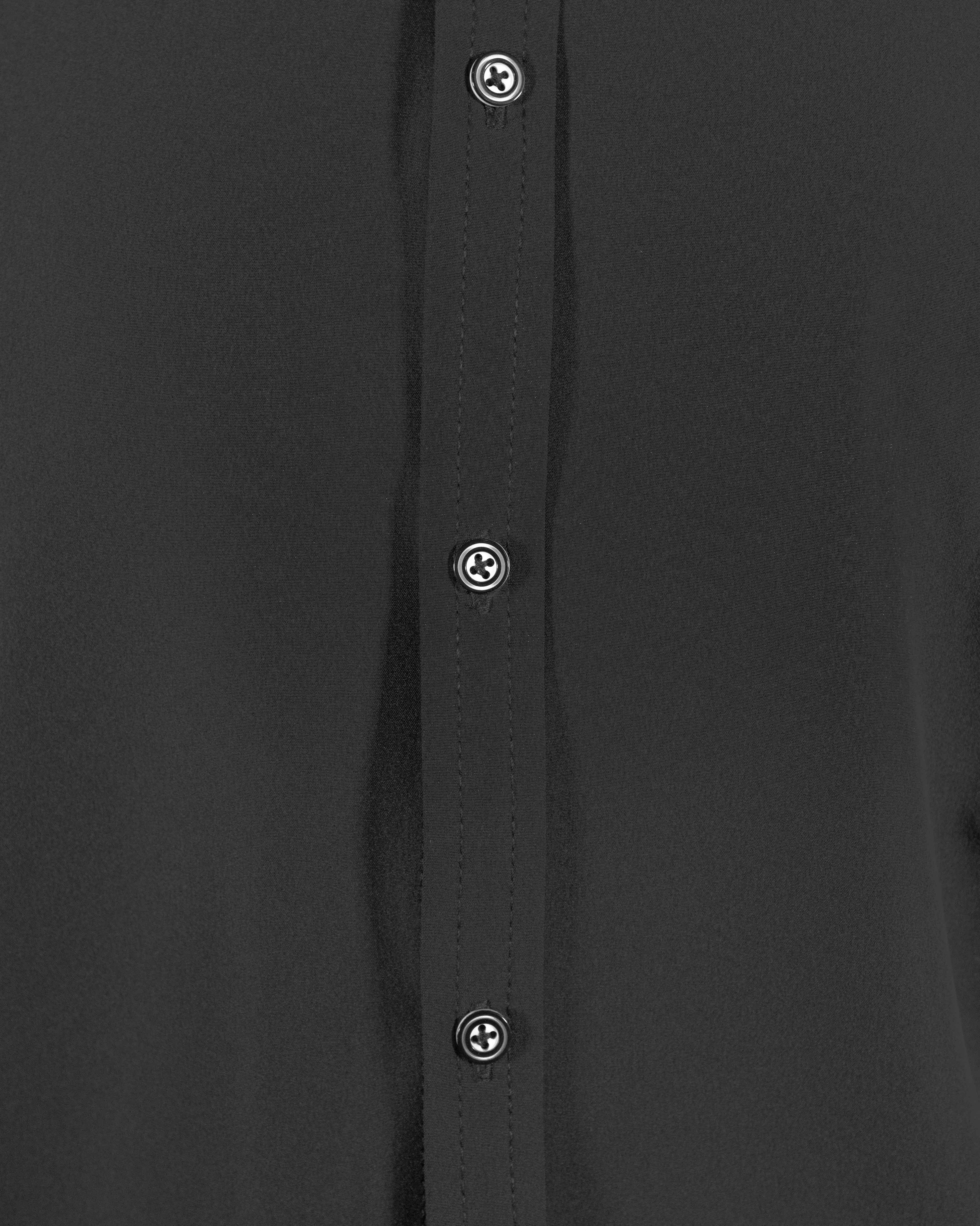 Esta camisa negra de manga corta con cuello cardigan es perfecta para cualquier ocasión. Confeccionada en tela stretch, proporciona una sensación ligera y fresca, mientras que su variedad de tallas asegura un ajuste perfecto. ¡Sienta la comodidad y el estilo con esta camisa versátil!